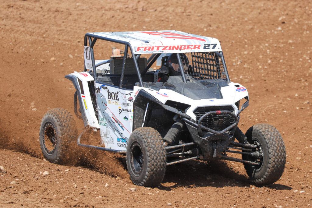 YOUTH SXS: Logan Fritzinger kept his winning streak alive in Youth SXS, making it eight straight victories after charging from seventh to the lead before the end of lap one. He led the rest of the way in another dominant wire-to-wire effort.