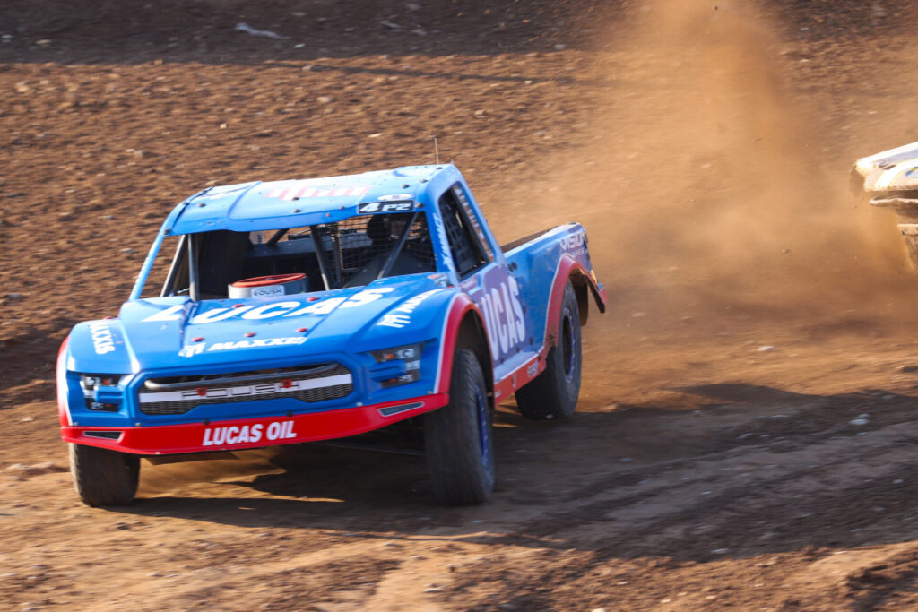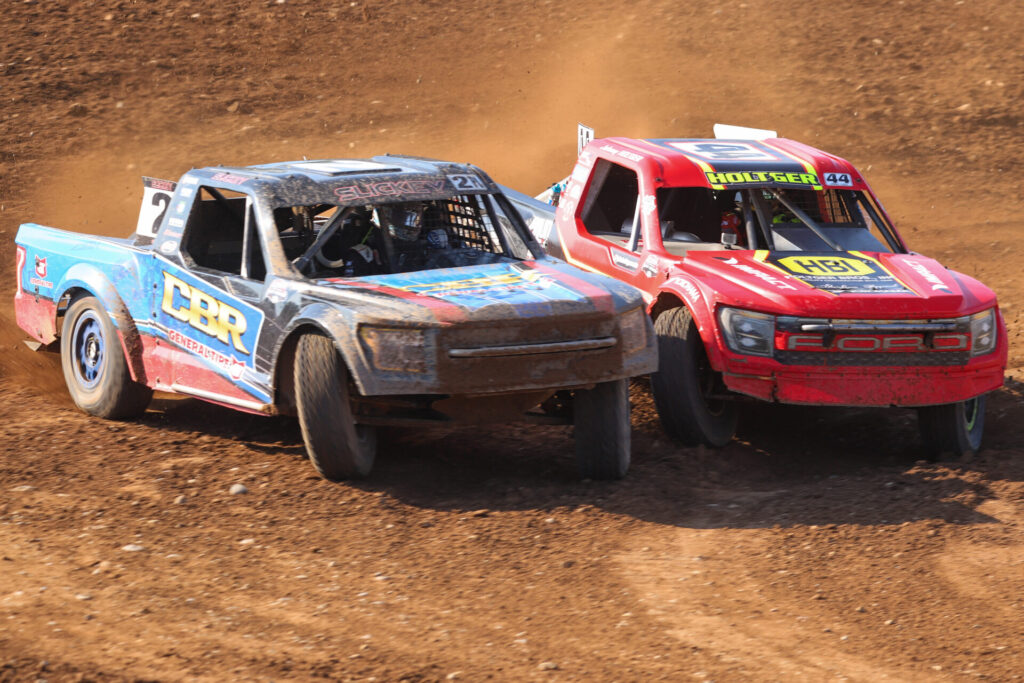Lena, Wis. ~ The second half of the AMSOIL Championship Off-Road season kicked off with high heat and even higher intensity as drivers battled on the tightest track in the sport: Lena, Wisconsin’s Dirt City Motorplex. Known for its tight turns, short straights, and limited room to breathe, Dirt City delivered a relentless day of contact, passes, and chaos that tested every driver’s patience and precision.