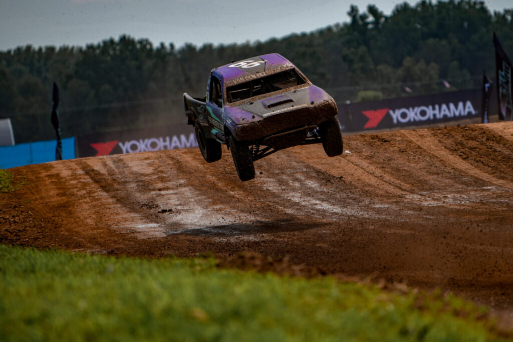 The points leader briefly grabbed the top spot on lap 11, and after a back-and-forth battle—with both drivers putting their trucks on two wheels—Van Den Elzen emerged out front once again to claim his fourth win in five rounds, bouncing back after Saturday’s streak-ending defeat. Miller crossed the line in second, keeping the points race tight heading into the final stretch.