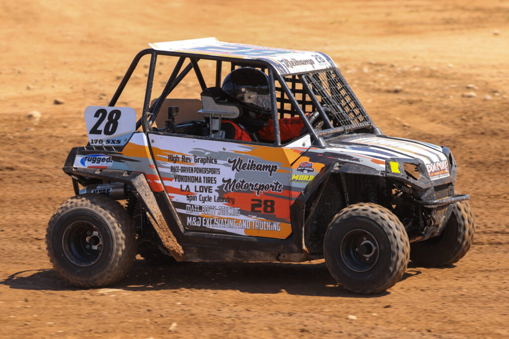 YOUTH SXS: Isaac Otto was aiming for a weekend sweep in Youth SXS after grabbing the win on Saturday, and he looked strong early, leading deep into the race while fending off Alexander Walraven. But on lap seven, Logan Fritzinger went on the hunt—charging from third to first in under a lap to secure his eighth win of the season.