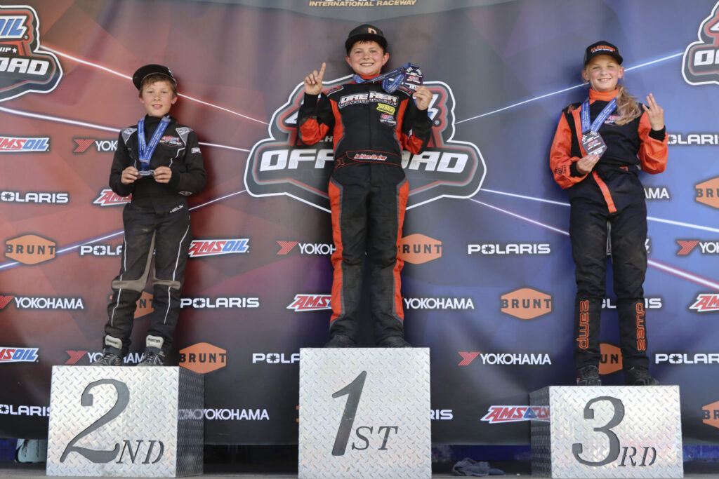 170/200 SXS: Ashton Dreher was the fastest driver all weekend in the combined 170/200 SXS class, and he backed it up with a wire-to-wire overall win in Sunday’s main event. The 170 SXS standout crossed the line first and secured the top spot on the 170 podium, joined by Jersey Kleikamp in second and Tucker Pakenham in third.